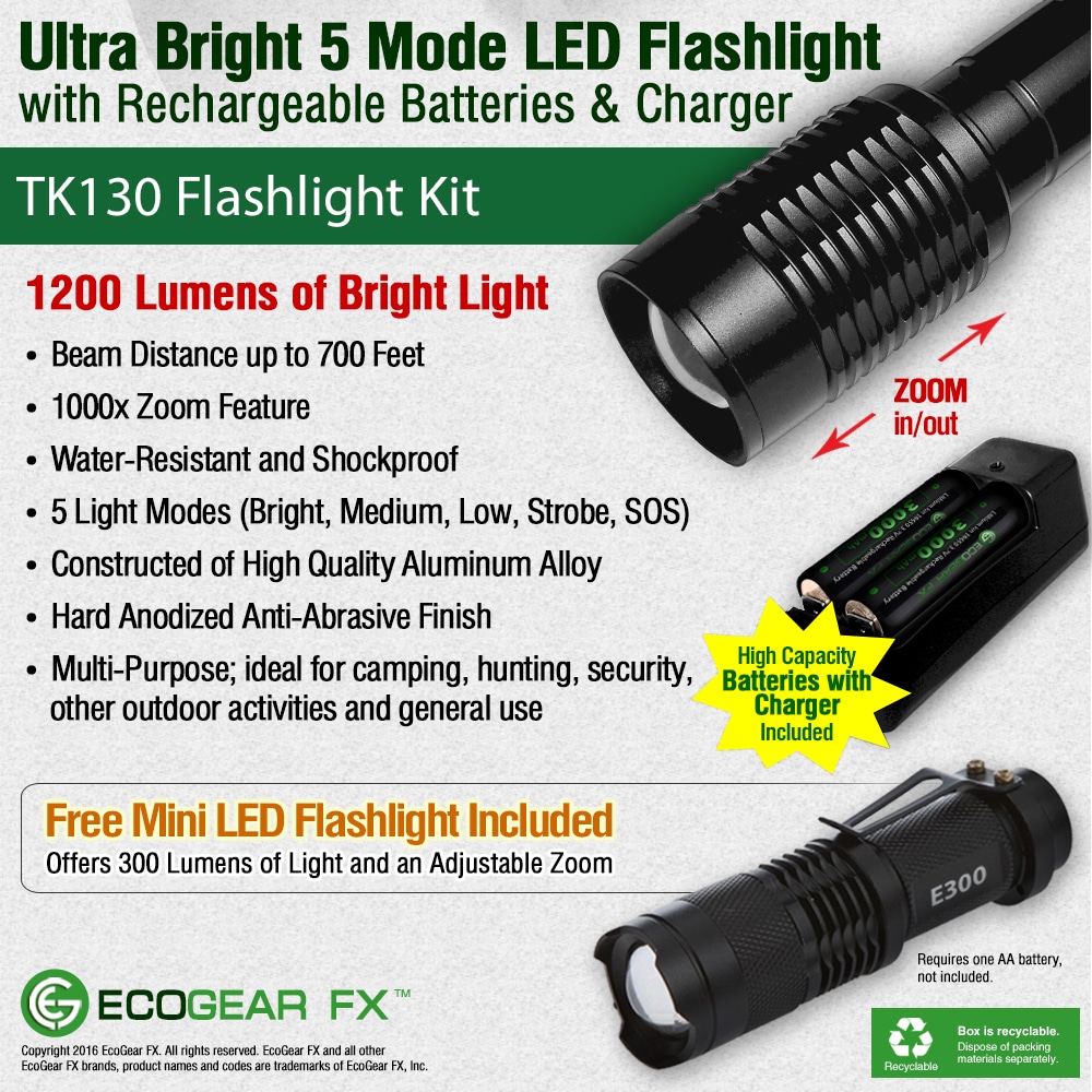 The TK130 LED Flashlight is powered by high-efficiency LED technology, delivering dependable brightness in a compact, rugged design. Built with hunters and campers in mind, it’s a reliable companion for everything from backcountry hikes to nights in the woods—and is often considered a go-to choice for camping.